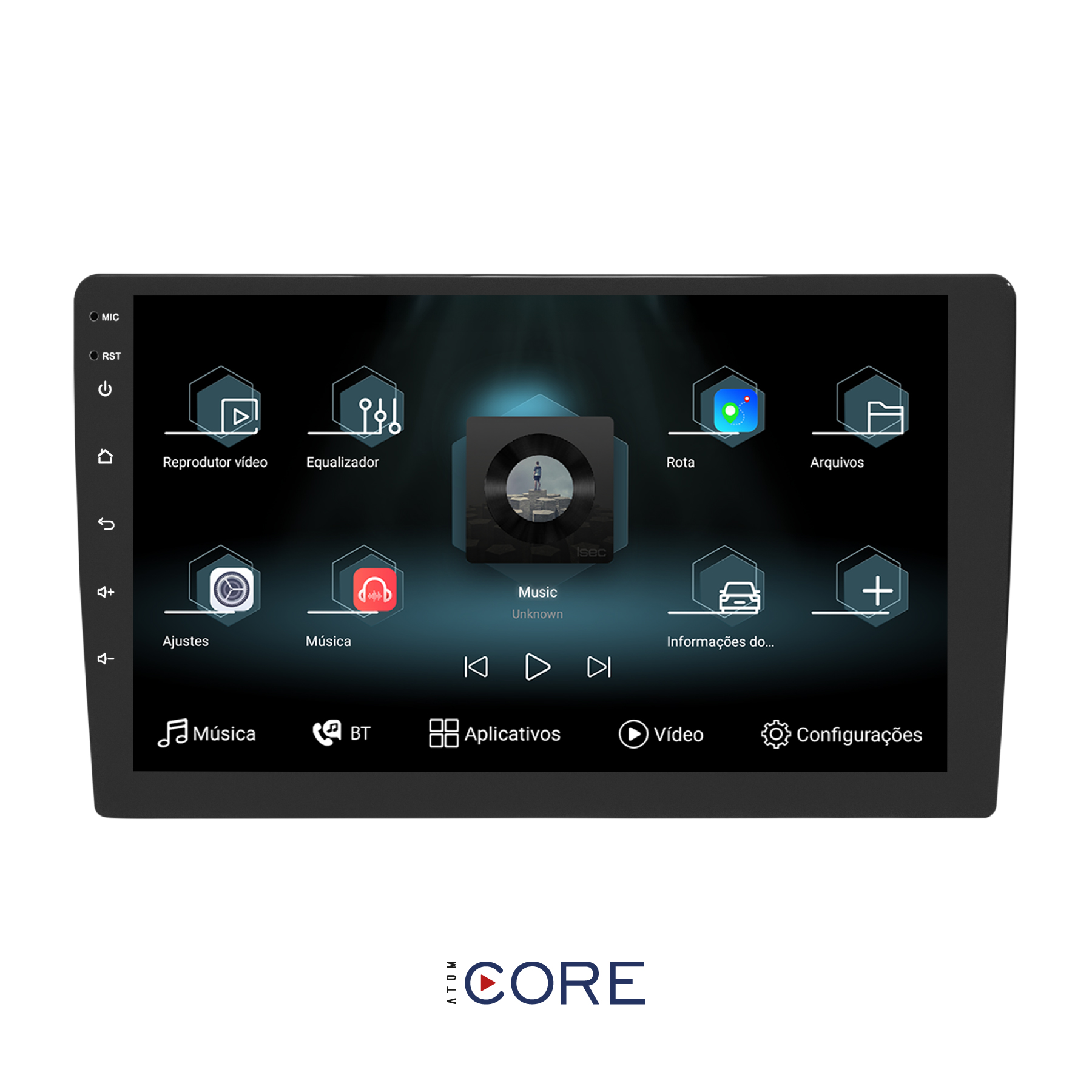 Rádio: Radio AM/FM com a função RDS, exibe informações como o nome da estação e música, gênero e notícias. Armazena até 18 estações FM e 12 estações AM para acesso rápido.
