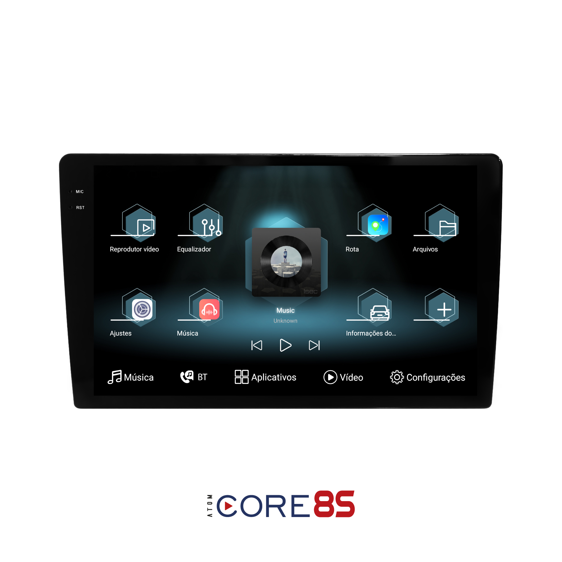 Rádio: Radio AM/FM com a função RDS, exibe informações como o nome da estação e música, gênero e notícias. Armazena até 18 estações FM e 12 estações AM para acesso rápido.