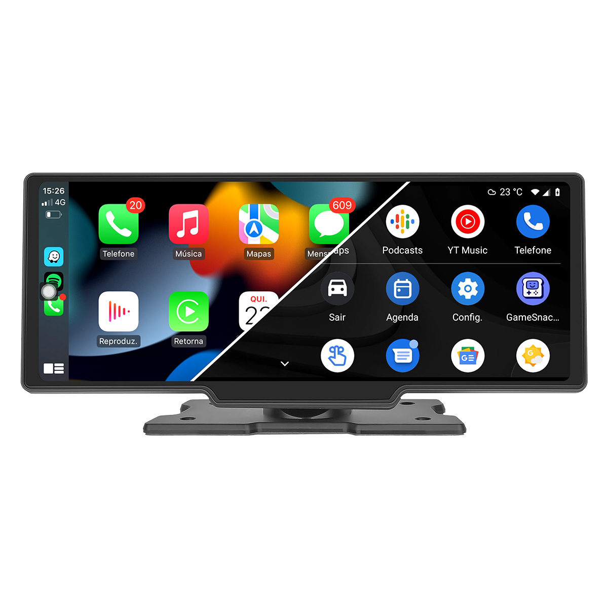 * Simula as funções CarPlay e Android Auto.