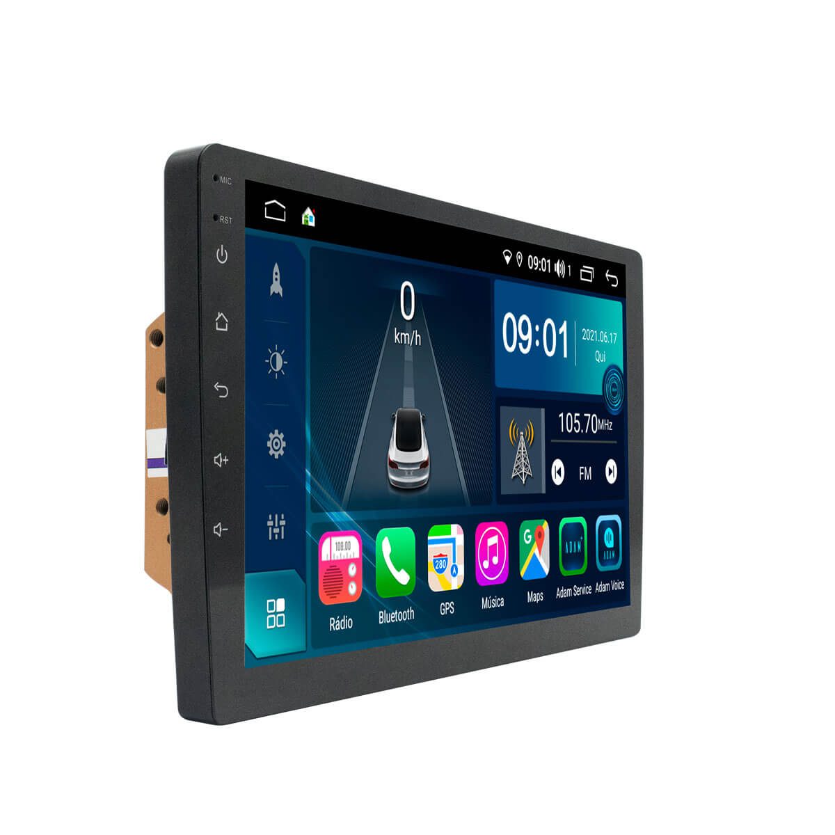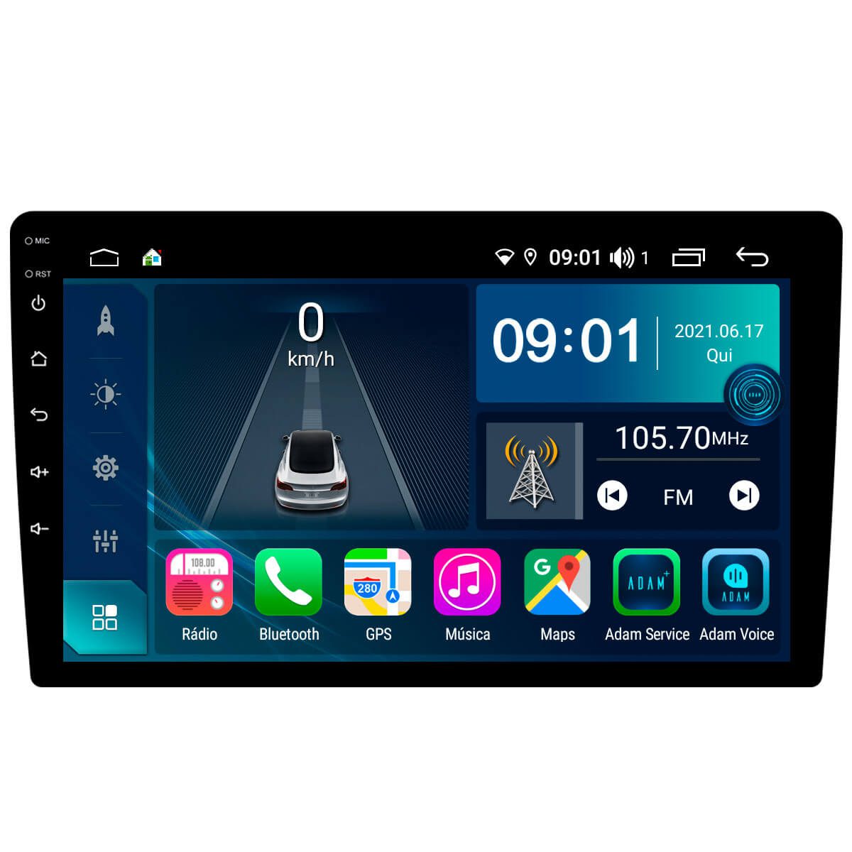 Rádio FM com sistema RDS, busca automática com memorização de até 18 estações FM.
